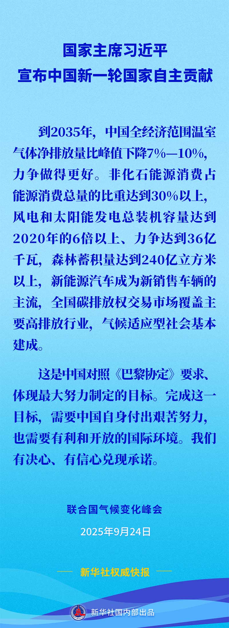 9月24日,國家主席習(xí)近平在聯(lián)合國氣候變化峰會(huì)發(fā)表視頻致辭,宣布中國新一輪國家自主貢獻(xiàn)。