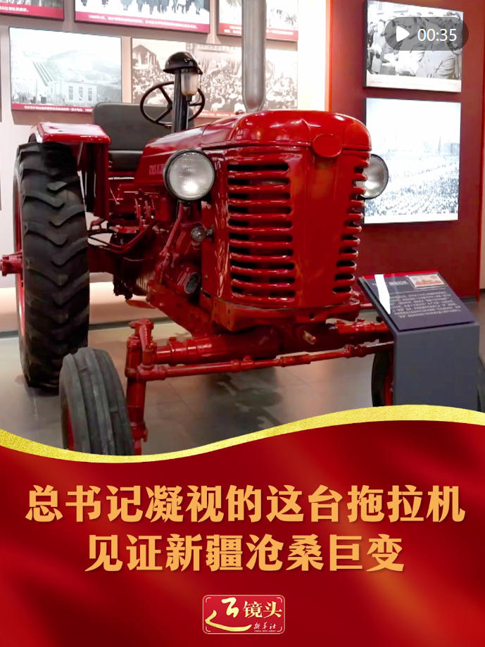9月24日上午,習(xí)近平總書(shū)記在烏魯木齊文化中心展覽館參觀(guān)新疆維吾爾自治區(qū)成立70周年主題成就展??倳?shū)記在成就展現(xiàn)場(chǎng)駐足察看的一臺(tái)拖拉機(jī),見(jiàn)證了新疆滄桑巨變,一起了解。