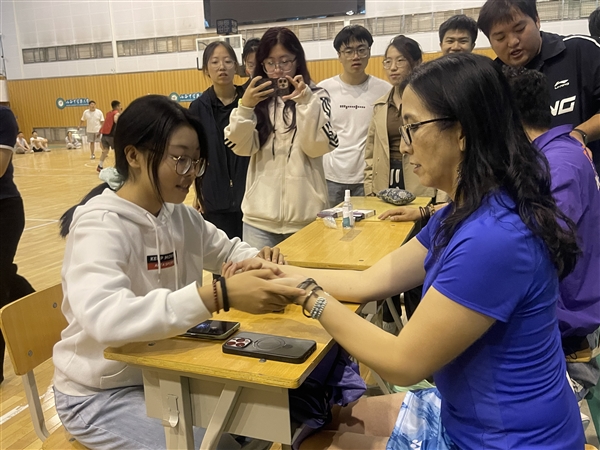 更具特色的是現(xiàn)場(chǎng)設(shè)置的“中醫(yī)藥健康驛站”。傅山學(xué)院10名學(xué)生組成的志愿團(tuán)隊(duì)忙著向師生介紹針灸、推拿等中醫(yī)特色醫(yī)療手段,還通過(guò)體質(zhì)辨證為參與活動(dòng)的教練員和運(yùn)動(dòng)員量身定制個(gè)性化調(diào)理方案。運(yùn)動(dòng)場(chǎng)上的活力揮灑與健康驛站的專(zhuān)業(yè)服務(wù)相互呼應(yīng),生動(dòng)詮釋了“體醫(yī)融合”的創(chuàng)新實(shí)踐價(jià)值。