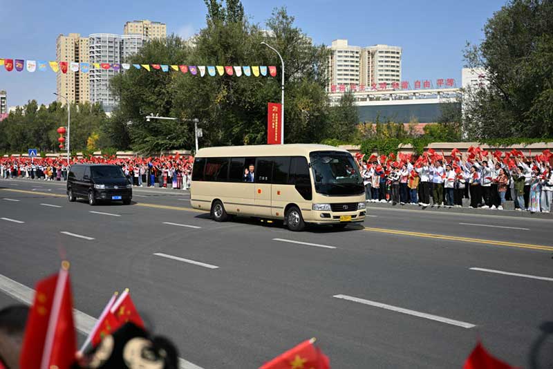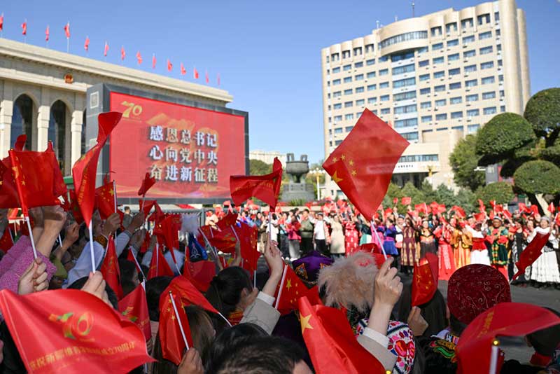 25日上午,習(xí)近平總書記在烏魯木齊市出席新疆維吾爾自治區(qū)成立70周年慶祝大會,同新疆各族各界干部群眾代表一道,熱烈慶祝新疆維吾爾自治區(qū)成立70周年。