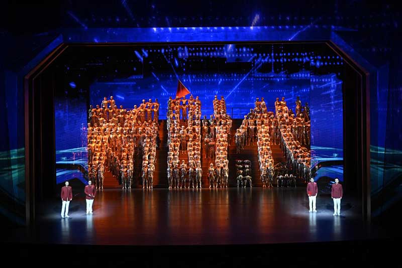 演出共3個篇章,展現(xiàn)新疆社會主義建設(shè)的火熱場景,表現(xiàn)改革開放給新疆帶來的蓬勃生機,描繪新疆各族兒女同心筑夢新時代的美好圖景。