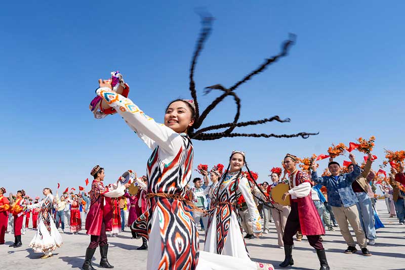 天山雪松根連根,各族人民心連心。廣袤的新疆大地上,各族群眾賡續(xù)團結(jié)基因,民族團結(jié)之花處處綻放,鑄牢中華民族共同體意識日益深入人心,“像石榴籽一樣緊緊抱在一起”已經(jīng)成為新疆民族團結(jié)的生動實踐和真實寫照。