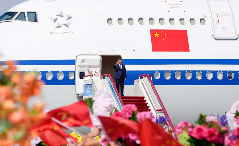 23日14時20分許,習(xí)近平總書記乘坐的專機在天山國際機場降落,等候在停機坪的新疆各族各界群眾熱烈歡呼。習(xí)近平總書記走出艙門,向歡迎群眾揮手致意。習(xí)近平總書記走下舷梯時,少先隊員獻上鮮花。