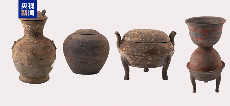 趙康村墓葬共出土器物76件,質(zhì)地有陶、銅、石、鐵等。所出器物,尤其是陶器,以仿銅禮器為主要組合方式,且器物皆放置于墓主人頭部或頭部一側(cè)專(zhuān)設(shè)的耳室中,體現(xiàn)了戰(zhàn)國(guó)以來(lái)傳統(tǒng)葬制的延續(xù)。所出器物整體矮圓,流行裝飾彩繪云氣紋等,均為西漢前期的風(fēng)格,且不見(jiàn)西漢中期以后流行的井、灶、倉(cāng)。
