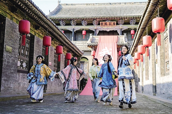 晉商婚俗表演《喬家有喜》,讓游客跟熱鬧的接親隊(duì)伍互動(dòng),沾喜氣、品民俗。身著傳統(tǒng)服裝的“喬家小姐姐”將在“大掌柜”的帶領(lǐng)下游街走秀,展現(xiàn)傳統(tǒng)服飾的魅力,參與互動(dòng)問(wèn)答可獲得文創(chuàng)禮品或銀票。游客掃碼購(gòu)票也能領(lǐng)取專屬銀票,贏得驚喜好禮。
