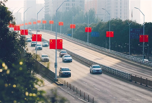 連日來,市城區(qū)各主干街道、大街小巷五星紅旗迎風(fēng)飄揚(yáng),“中國紅”構(gòu)成了城市最亮麗的風(fēng)景線,將慶祝中華人民共和國成立76周年的氛圍感拉滿。9月下旬以來,市市政公用事業(yè)服務(wù)中心分別在市城區(qū)龍湖街、錦綸路、順城街、匯通路、魏榆路、新華街等6條主干道的燈桿上懸掛國旗1000組。國旗懸掛期間,該中心工作人員每日巡查,及時更換、維護(hù)國旗,確保國旗整齊靚麗,展現(xiàn)城市昂揚(yáng)向上、不懈奮斗的氣質(zhì)。驅(qū)車行駛在市城區(qū)龍湖街、魏榆路等主干道上,只見隨著路燈桿的走勢,五星紅旗在金色秋日里展現(xiàn)出欣欣向榮、朝氣蓬勃的景象。此外,全市各縣(區(qū)、市)的各條主街道,由商家根據(jù)相關(guān)規(guī)定,懸掛起一面面國旗營造節(jié)日氛圍。