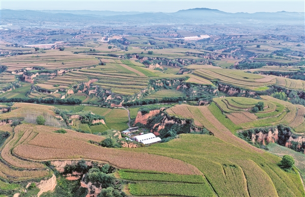 黃土高坡山梁溝垣間種植的玉米、谷子等作物陸續(xù)成熟